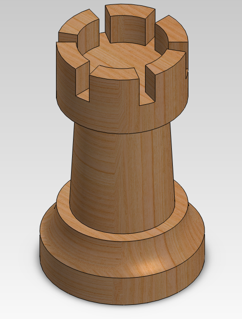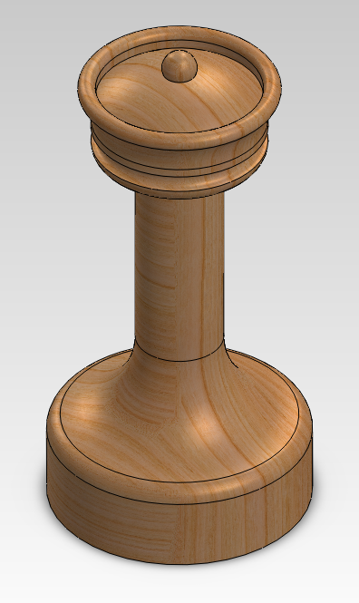 This project was made while studying drafting programs like AutoCAD. While learning some of these programs, I decided to put an artistic spin on things and create something other than machine parts. This led me to create an entire chess set using SolidWorks. Each piece is accurately sized in both height and width to follow standard chess guidelines. Each piece can be seen in greater detail below.